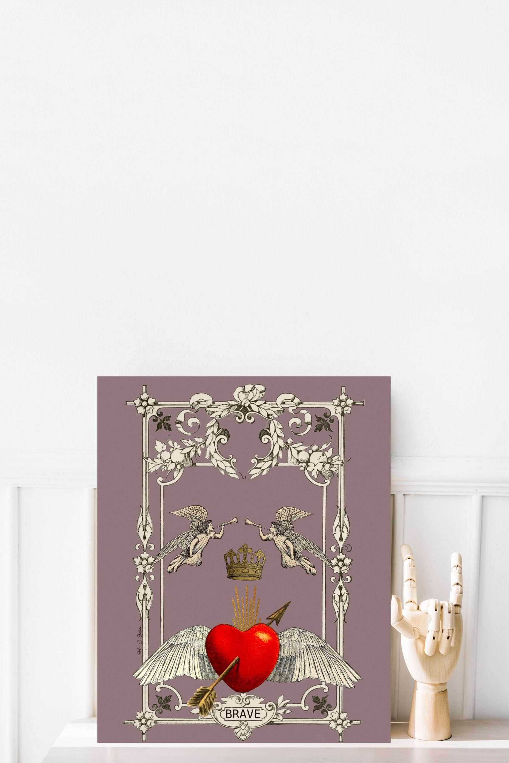 This image is a fascinating blend of classical and contemporary elements, centered around the theme of bravery, symbolized through a heart with wings. The artwork utilizes a harmonious combination of intricate details, rich symbolism, and elegant design to convey a powerful message.
